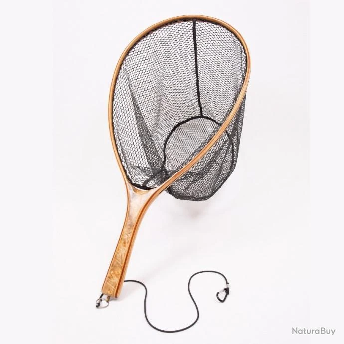 Raquette en bois précieux vernis, de très haute qualité équipée d’un filet nylon enduit « rubber » à fond plat.Raquette en bois précieux vernis, de très haute qualité équipée d’un filet nylon enduit « rubber » à fond plat.